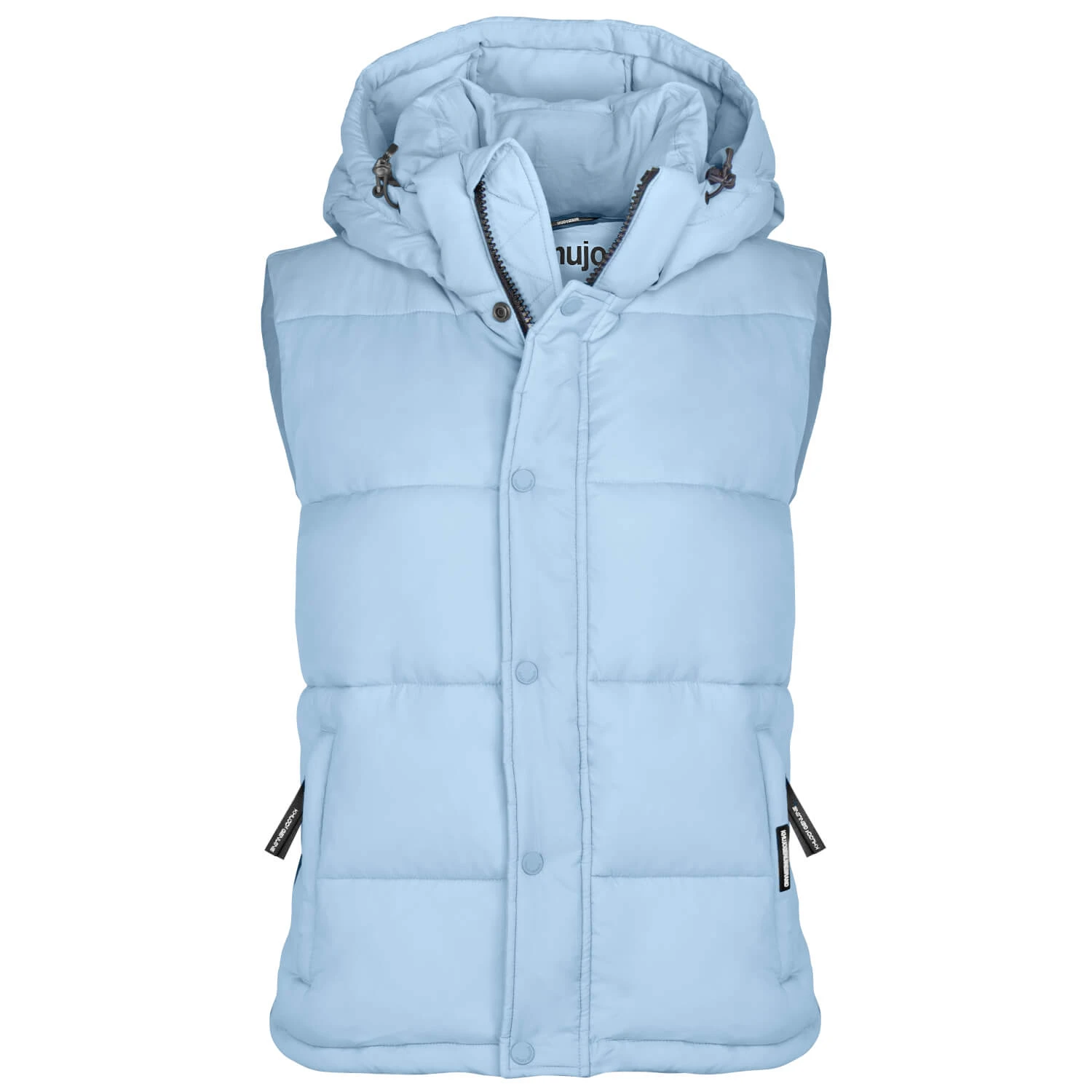 Kuschelig warm und voll im Trend! So präsentiert sich die Steppweste aus dem Hause Khujo. Ausgestattet mit weicher Füllung hält sie schön warm und die Kapuze lässt sich mit elastischen Kordelzügen individuell einstellen und schützt so zusätzlich vor der Kälte. Die zwei seitlichen Eingriffstaschen mit Reißverschluss sind mit Fleece gefüttert und bieten Platz für allerlei Kleinigkeiten. Lässig kombiniert zu Pullover, Jeans und Stiefeln setzt die Weste deinem Outfit die Krone auf.