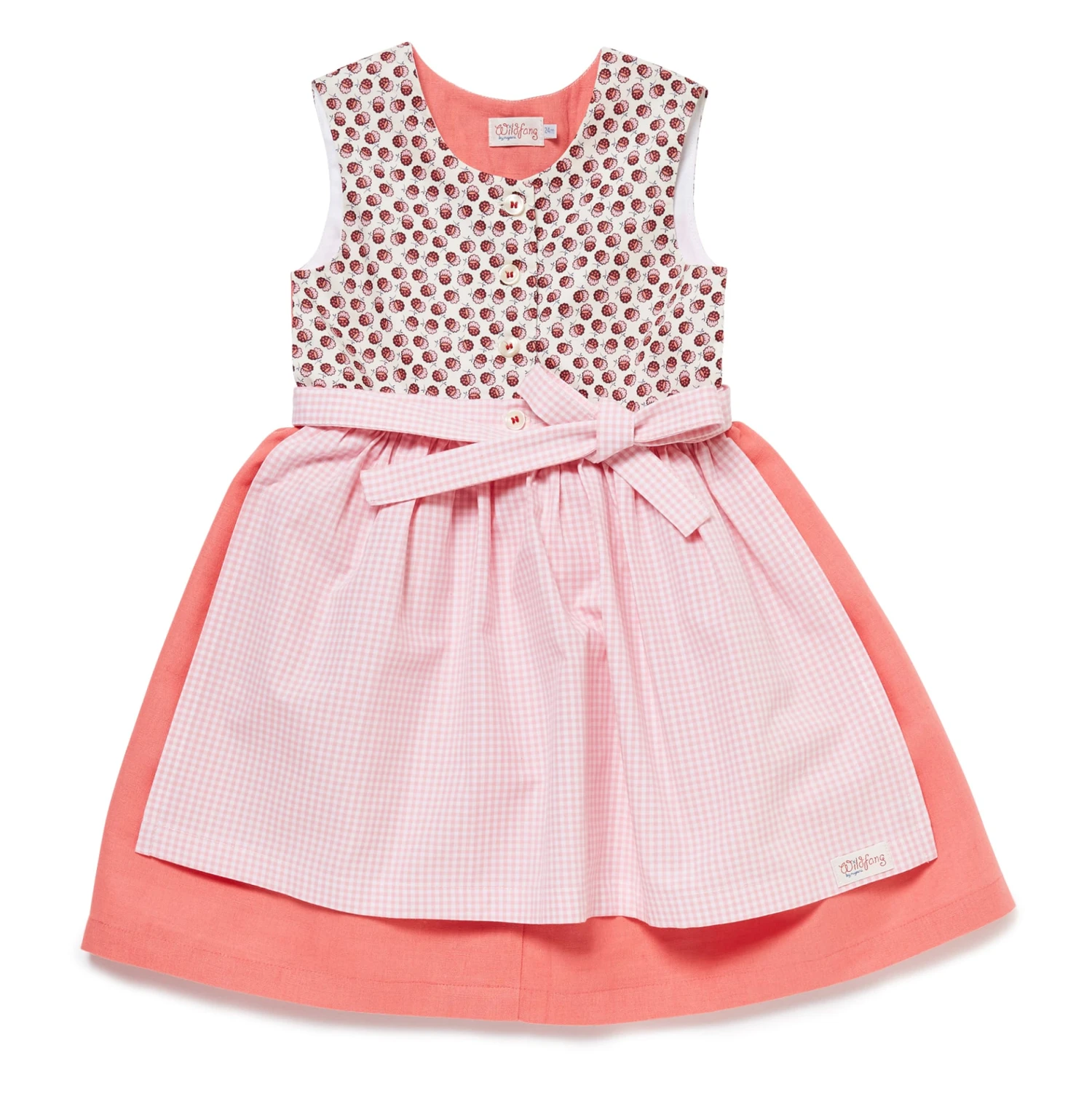 Kinderkleid „MY DIRNDL NUTS!“ Mit Nüsschenmuster In Lachs/Rosa Kariert