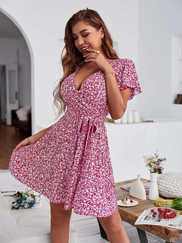 Kleid In Rot/ Weiß