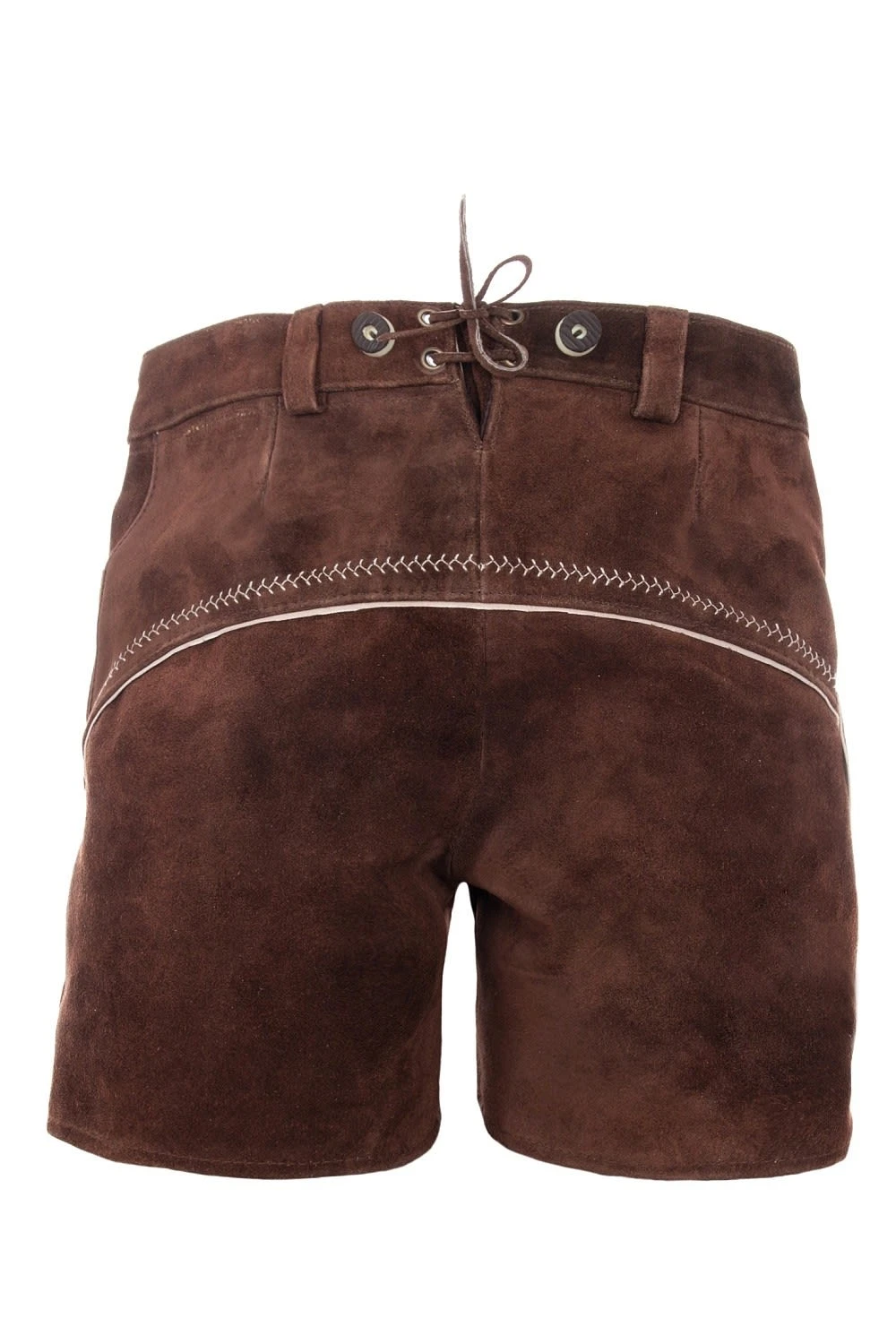 Die Trachtenlederhose in der Farbe dunkelbraun, bietet hohen Tragekomfort und eine hervorragende Passform.