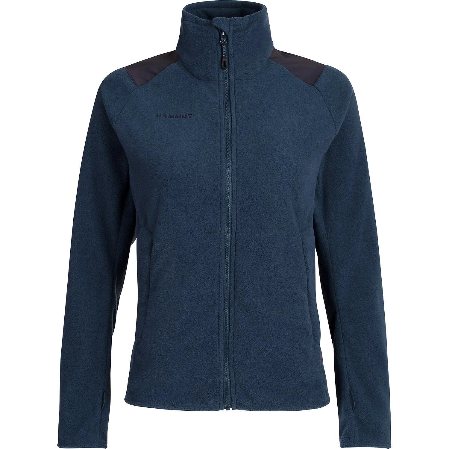 Die Innominata Light ML Jacket Women von Mammut ist eine flexible Allround-Fleece-Jacke für ganzjährigen Einsatz. Die umweltbewusste Herstellung durch Verwendung von 100 % recyceltem Polyester zeichnen diesen Midlayer aus. Der Double-Weave-Kontraststoff der Schulterverstärkung dienen als Design-Element, machen den Pullover aber auch dort, wo die Träger eines Rucksacks für Abrieb sorgen, robust.