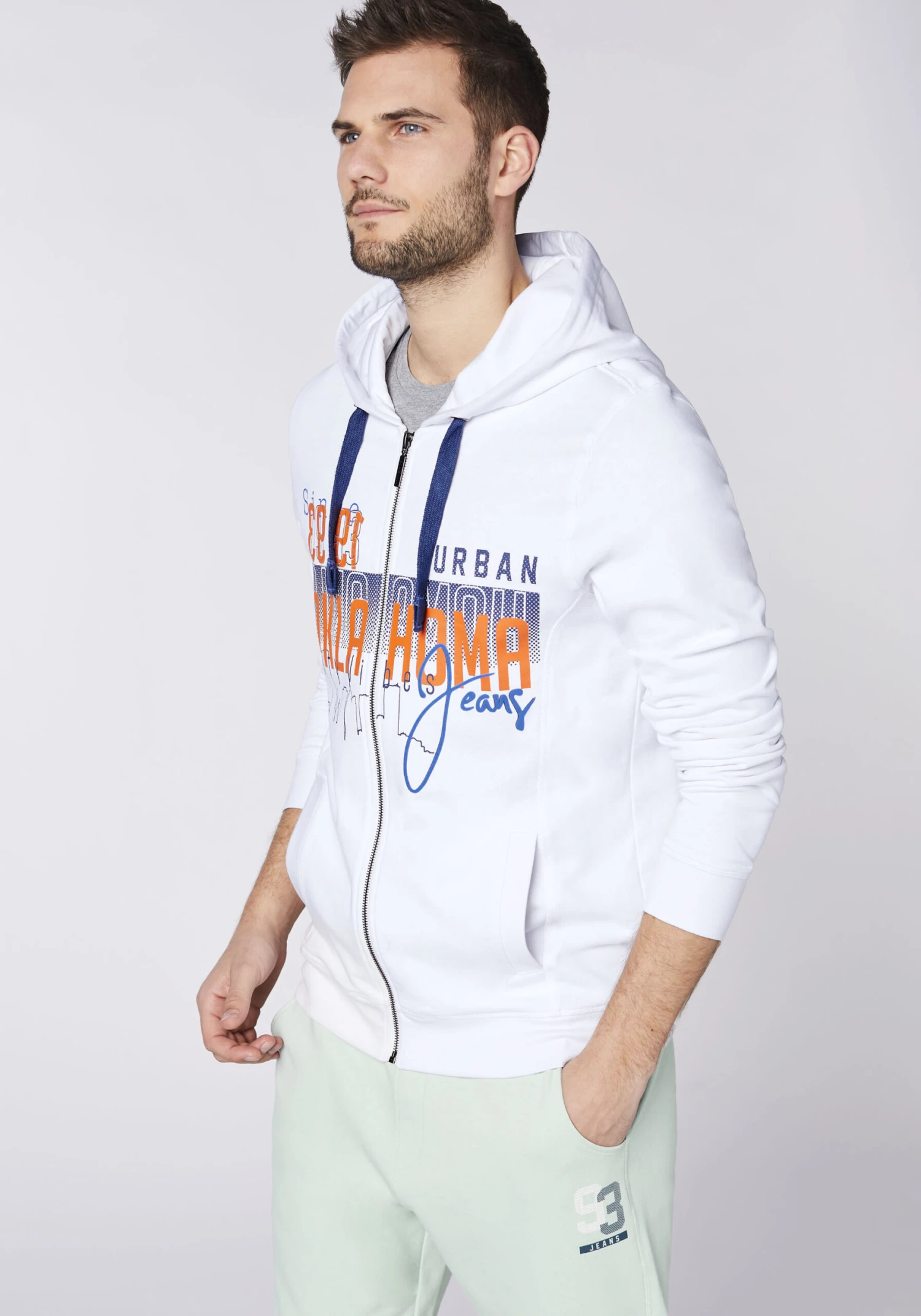 – OKLAHOMA JEANS Herren-Kapuzenjacke mit Label-Print
