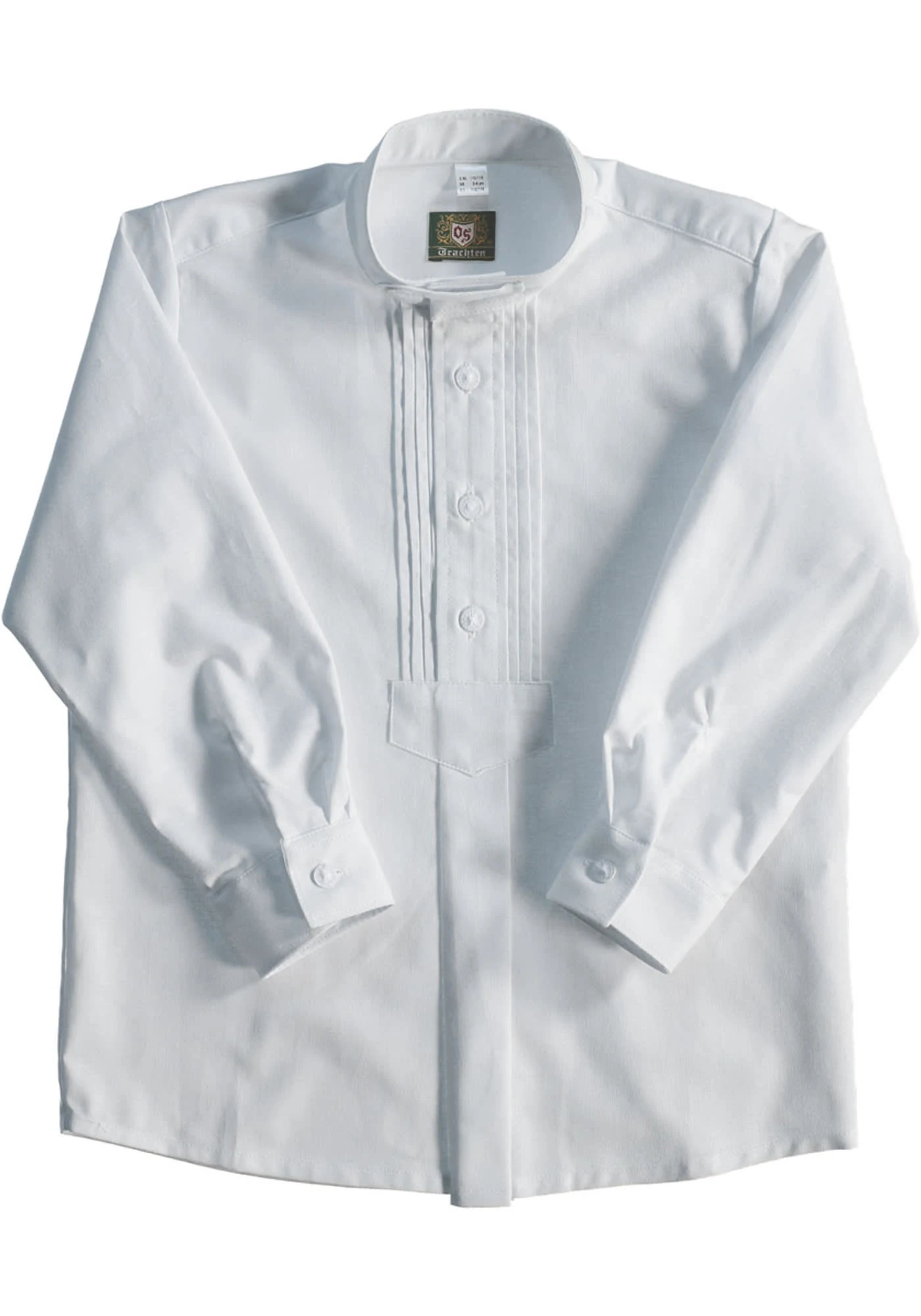 Suchen Sie für Ihren Nachwuchs ein Trachtenhemd mit Stehkragen? Dann empfehlen wir Ihnen dieses – von OS-Trachten mit viel Liebe zum Detail schon ab Größe 74 gefertigt. Das weiße Hemd in Schlupfform ist bequem weit geschnitten, die reine Baumwolle mag auch zarte Kinderhaut. Übrigens: ein schönes Geschenk auch von Patentante oder -onkel!