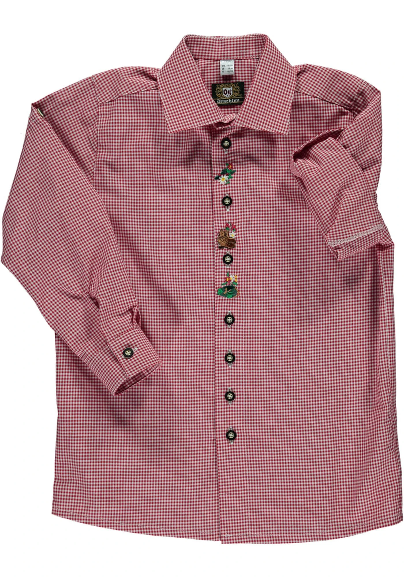 Zum Verlieben schön ist dieses kleinkarierte Hemd für kleine Trachtenfans. Blickfang ist die kunstvoll bestickte Knopfleiste, typisch auch die Knöpfe in Hirschhorn-Optik. Die langen Ärmel können Sie hochkrempeln und mit Lasche und Knopf fixieren. In vier Farben zur Auswahl, alle aus reiner Baumwolle gefertigt, von Größe 74 bis 182 in der aktuellen Kollektion von OS Trachten.