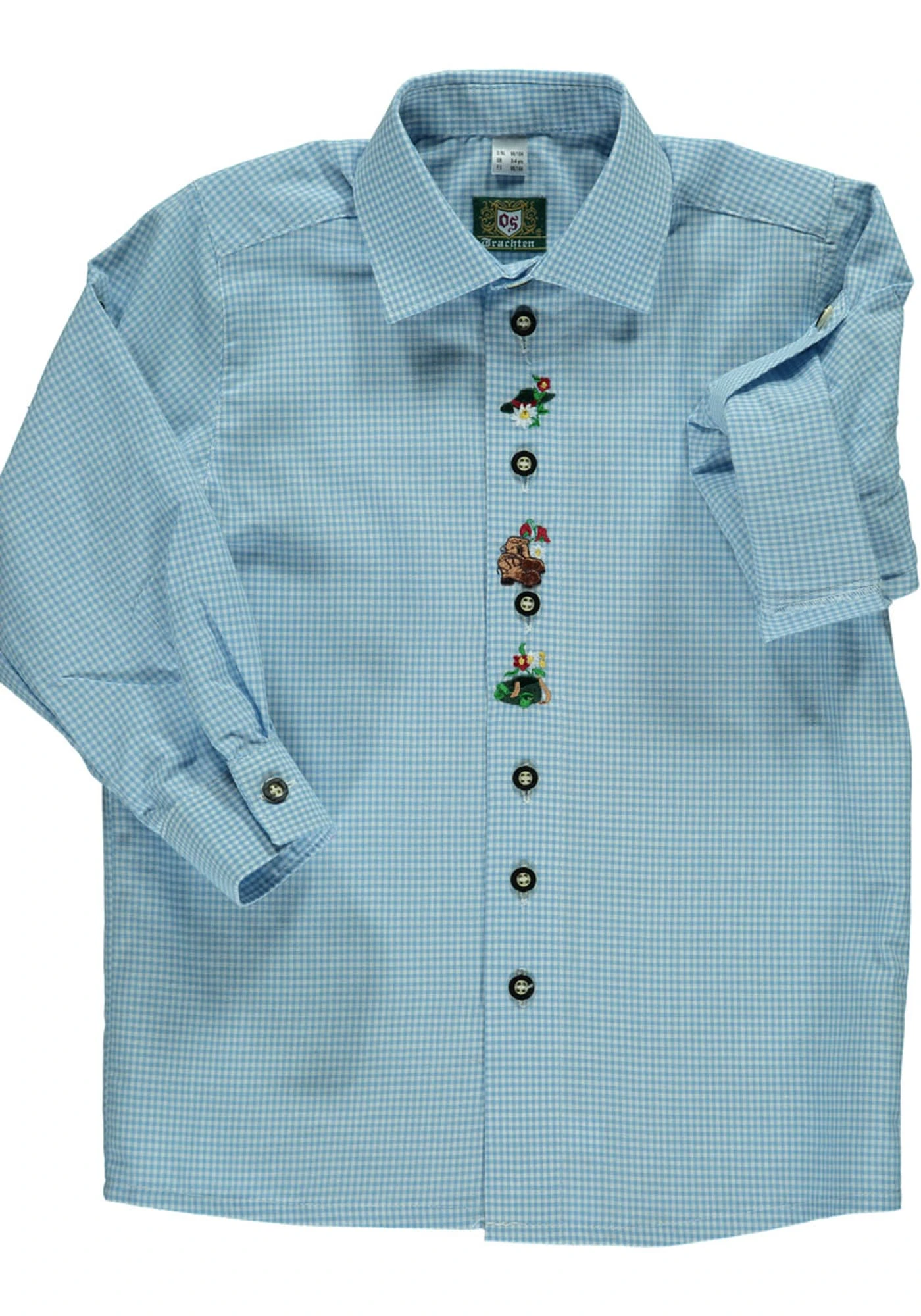 Zum Verlieben schön ist dieses kleinkarierte Hemd für kleine Trachtenfans. Blickfang ist die kunstvoll bestickte Knopfleiste, typisch auch die Knöpfe in Hirschhorn-Optik. Die langen Ärmel können Sie hochkrempeln und mit Lasche und Knopf fixieren. In vier Farben zur Auswahl, alle aus reiner Baumwolle gefertigt, von Größe 74 bis 182 in der aktuellen Kollektion von OS Trachten.