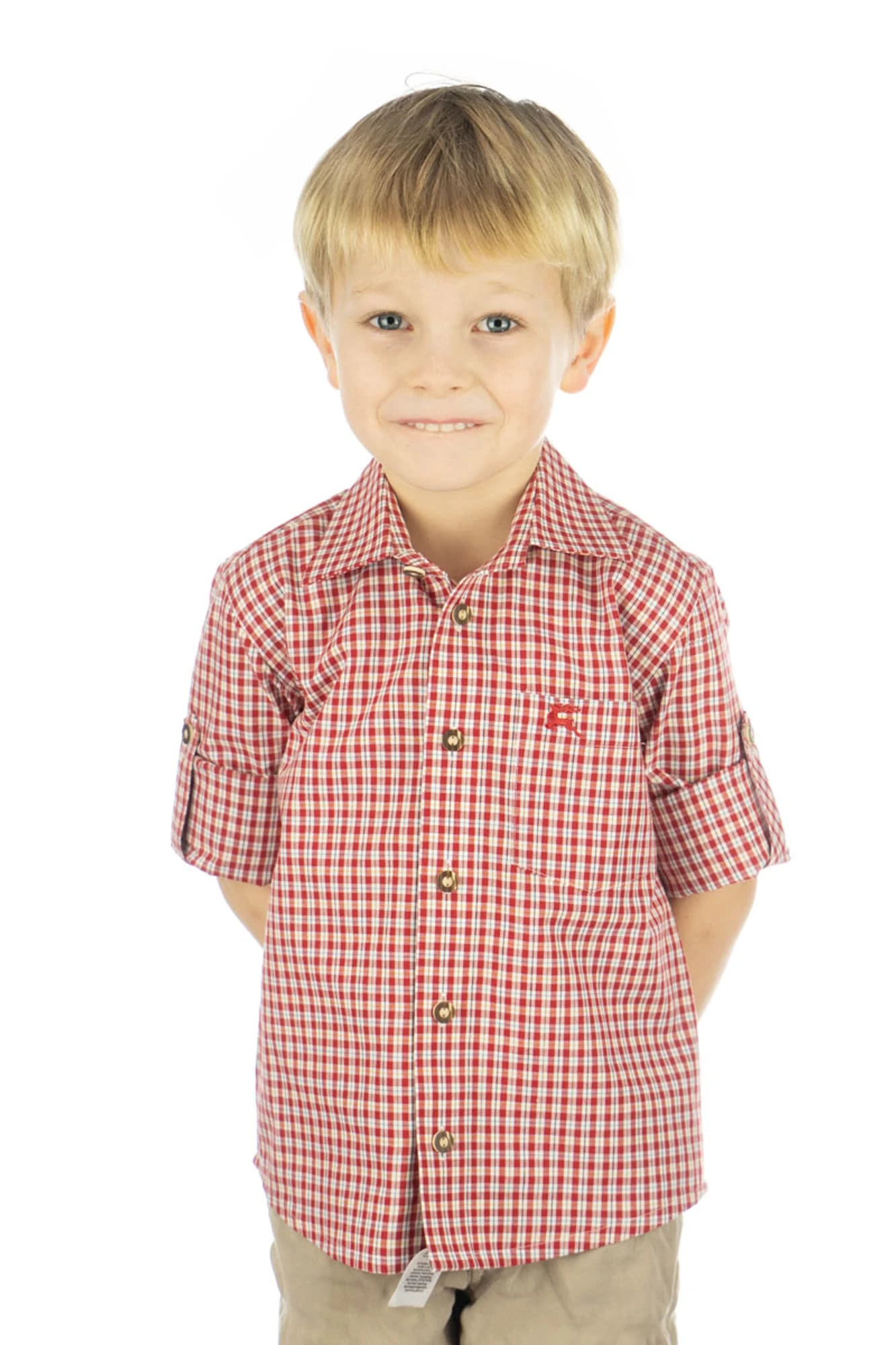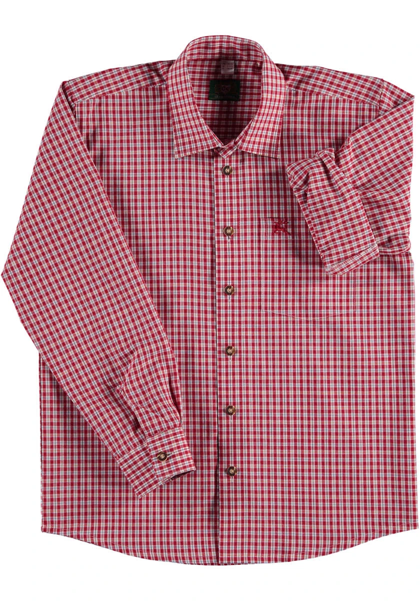 Zur Lederhose und zur Jeans passt dieses Trachtenhemd für Kinder. Die zweifarbigen Karokombinationen sehen frisch aus – und machen gute Laune. Aus pflegeleichtem Mischgewebe mit 60 % Baumwolle, mit allen Eigenschaften, die ein echtes Trachtenhemd benötigt: Knöpfe in Hirschhorn-Optik und Krempelärmel, die mit einer Lasche festgehalten werden. Und in die kleine Brusttasche mit Stickerei passen alle Schätze, die der Nachwuchs auf der Bergtour findet.